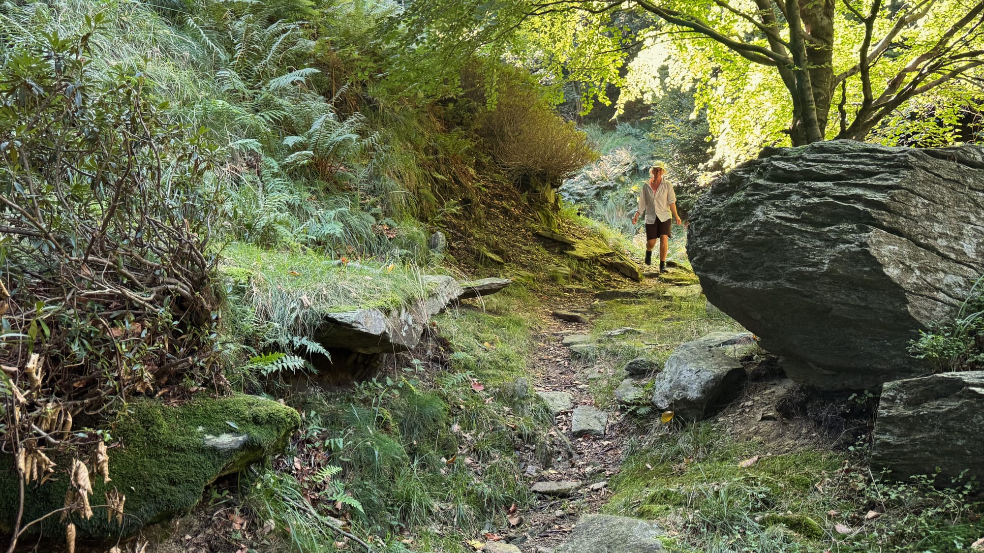 Geplant war der "Sentiero Bove", eine anspruchsvolle Gratwanderung über die Gipfel des Val Pogallo, die uns einmal rund um Cicogna führen sollte. Der Trail gehört zu den schwierigsten Touren im Val Grande. Für Wanderer ist er zu schwer, für Kletterer zu leicht. Zu den rein technischen Anforderungen mit der Bewertung T5 kommt noch, dass es, jetzt, im späten Sommer, über weite Strecken kein Wasser geben wird. Das klingt nach genau der Herausforderung, die wir suchen.